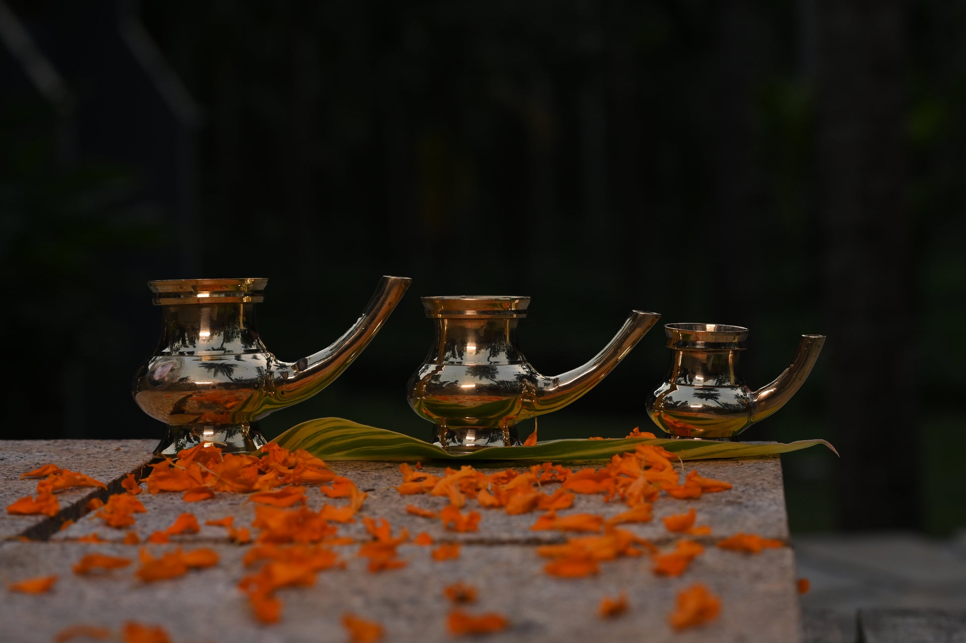 The Kerala Bronze Pooja Kindi is a traditional vessel used in Kerala for rituals, puja, and daily offerings. Handcrafted from high-quality bronze, this kindi reflects the cultural richness of Kerala’s heritage. It is designed with a rounded body and a spouted neck, making it easy to pour water during rituals, a practice symbolizing purification and offering to deities. Its timeless design and smooth finish bring a touch of authenticity and elegance to any pooja room or spiritual setting.