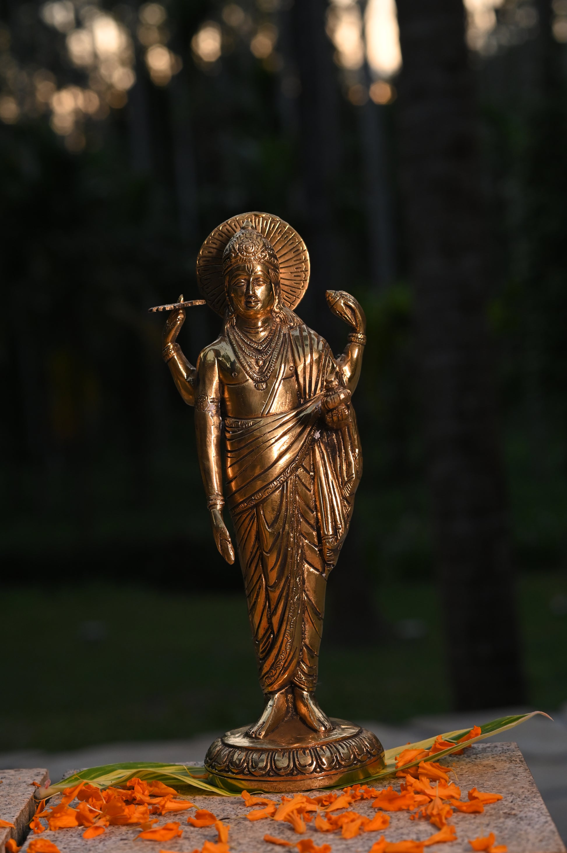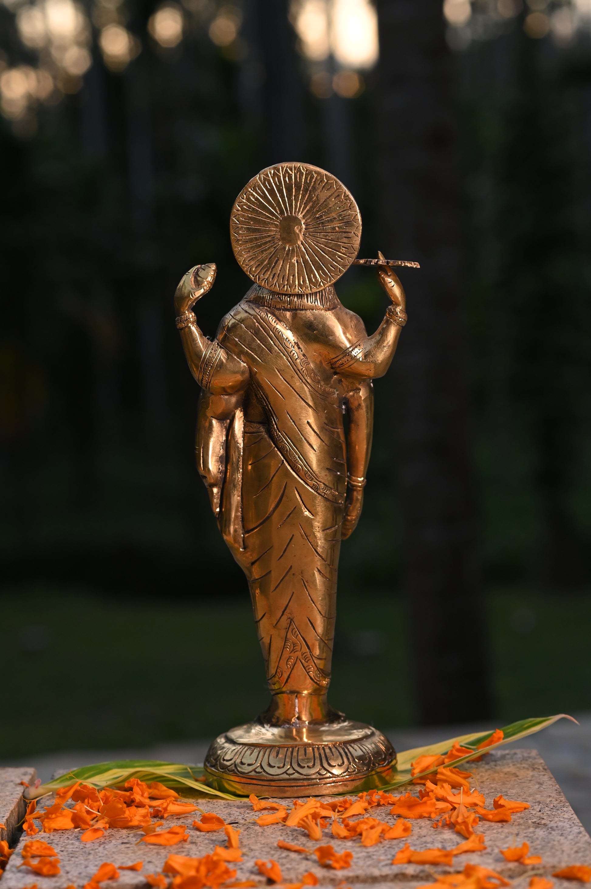 The Dhanvantri Brass Idol represents Lord Dhanvantari, the Hindu god of medicine and Ayurveda, revered as the divine healer and the source of health and well-being. Crafted from high-quality brass, this idol captures the serene and benevolent presence of Dhanvantari, who is often depicted holding the Amrita (nectar of immortality) and medicinal herbs. This idol is an ideal addition to any pooja room, clinic, or wellness space, inviting divine health, healing, and protection.