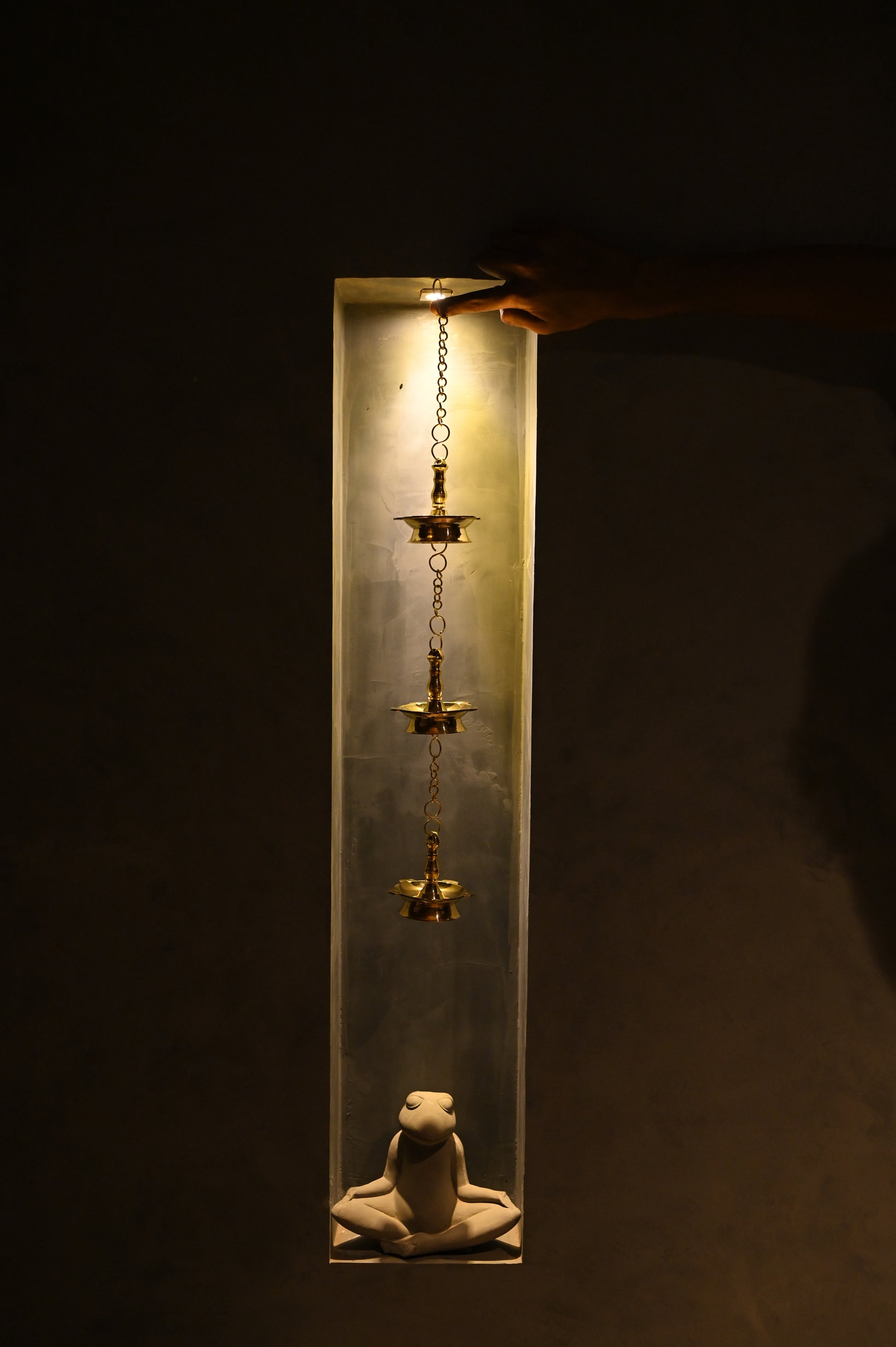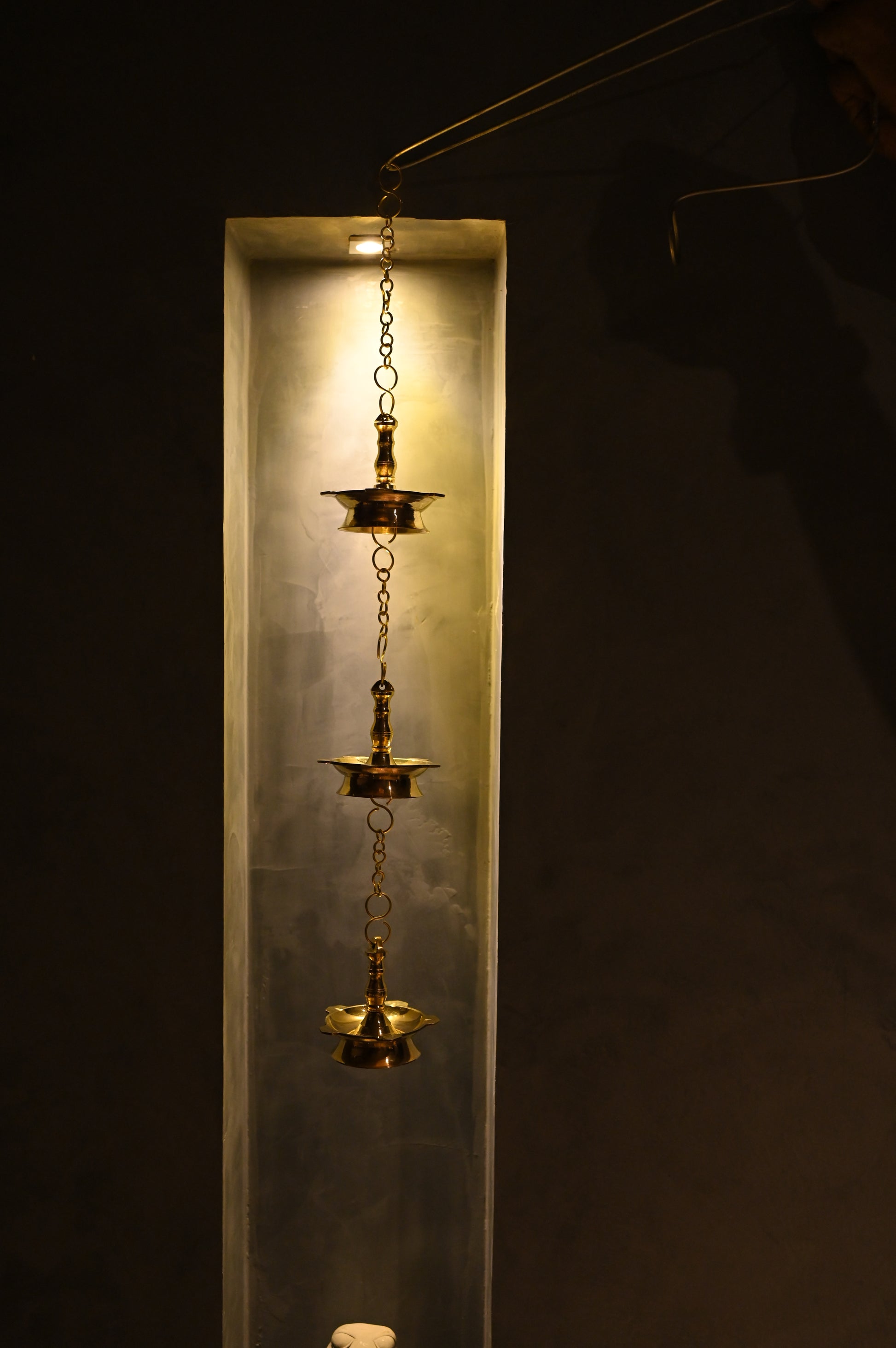 The Fancy Hanging Lamp Set of 3 is a stunning collection of intricately designed lamps, perfect for adding a touch of elegance and spirituality to any space. Crafted with attention to detail, these lamps are ideal for use during pooja rituals, festive celebrations, or as decorative lighting in your home or temple. The set offers a harmonious blend of traditional charm and contemporary design, making it a versatile addition to your decor.