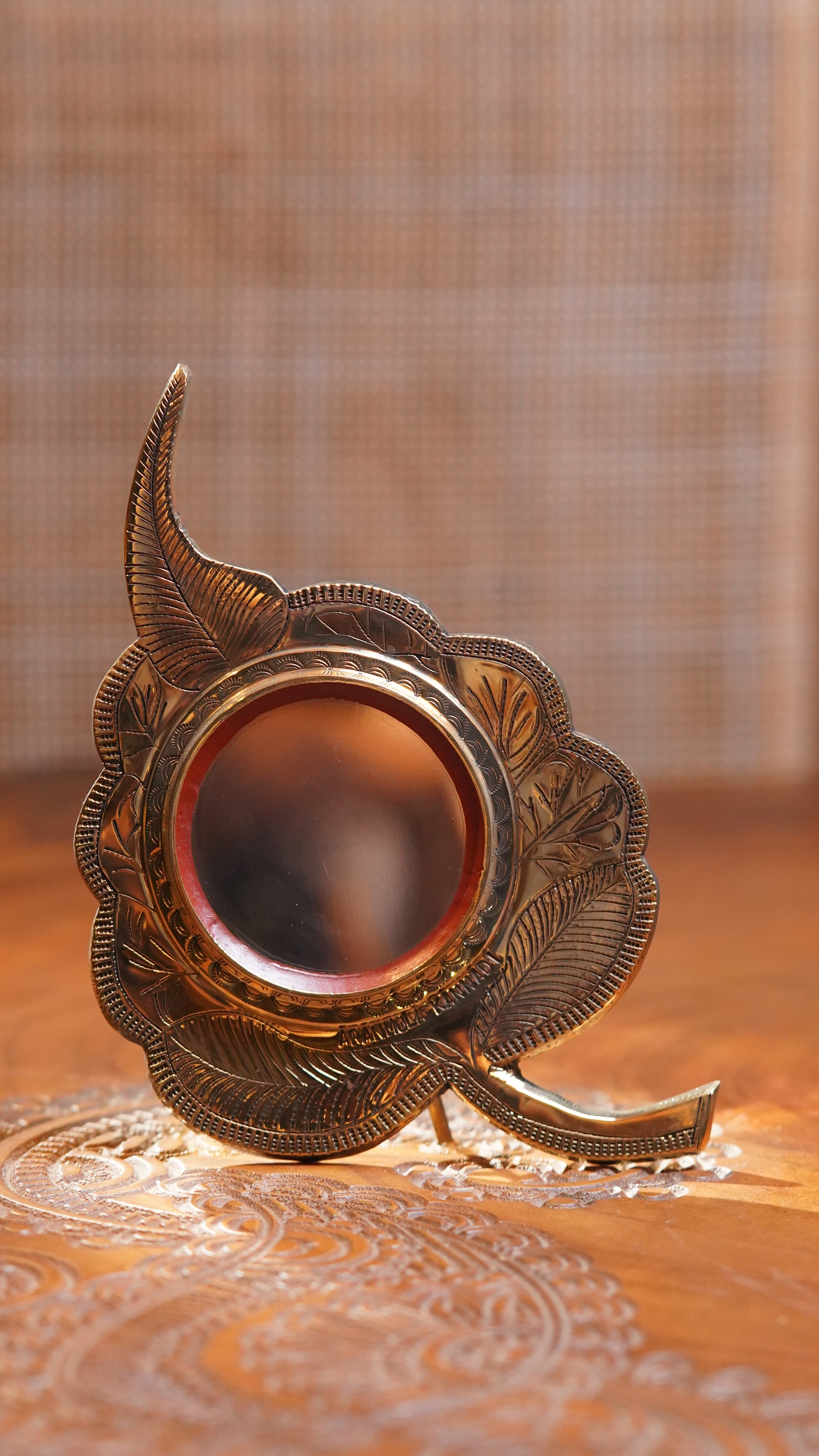 The Aaranmula Kannadi 3" is a traditional, handcrafted mirror that originates from the historic town of Aaranmula, Kerala. Known for its unique and exquisite craftsmanship, the Aaranmula Kannadi is renowned for its mirror-making process, which has been perfected over centuries. Unlike conventional mirrors, the Aaranmula Kannadi is made using metal alloys and handcrafted to create a beautiful, reflective surface with a timeless appeal.