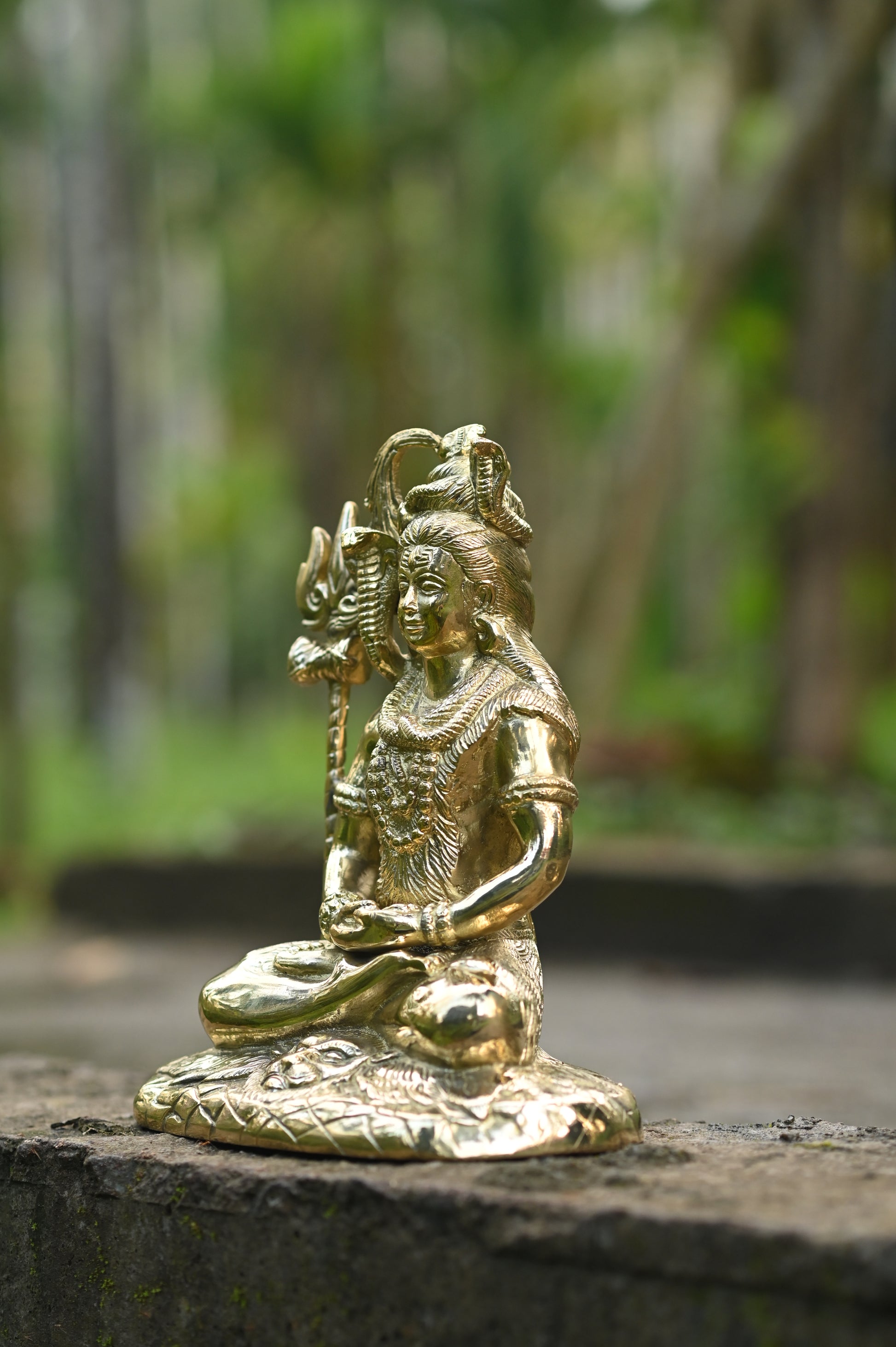 This beautifully crafted Lord Shiva statue is a magnificent representation of the Hindu god known as the destroyer and transformer within the holy trinity, or Trimurti, of Brahma, Vishnu, and Shiva. Made from high-quality brass or bronze, this statue captures Lord Shiva in a peaceful and powerful posture, embodying serenity, strength, and the transcendental wisdom that defines him. The statue often features Lord Shiva seated in deep meditation, holding a trident, or trishul, with a coiled snake around his neck, symbolizing his mastery over fear and death.
