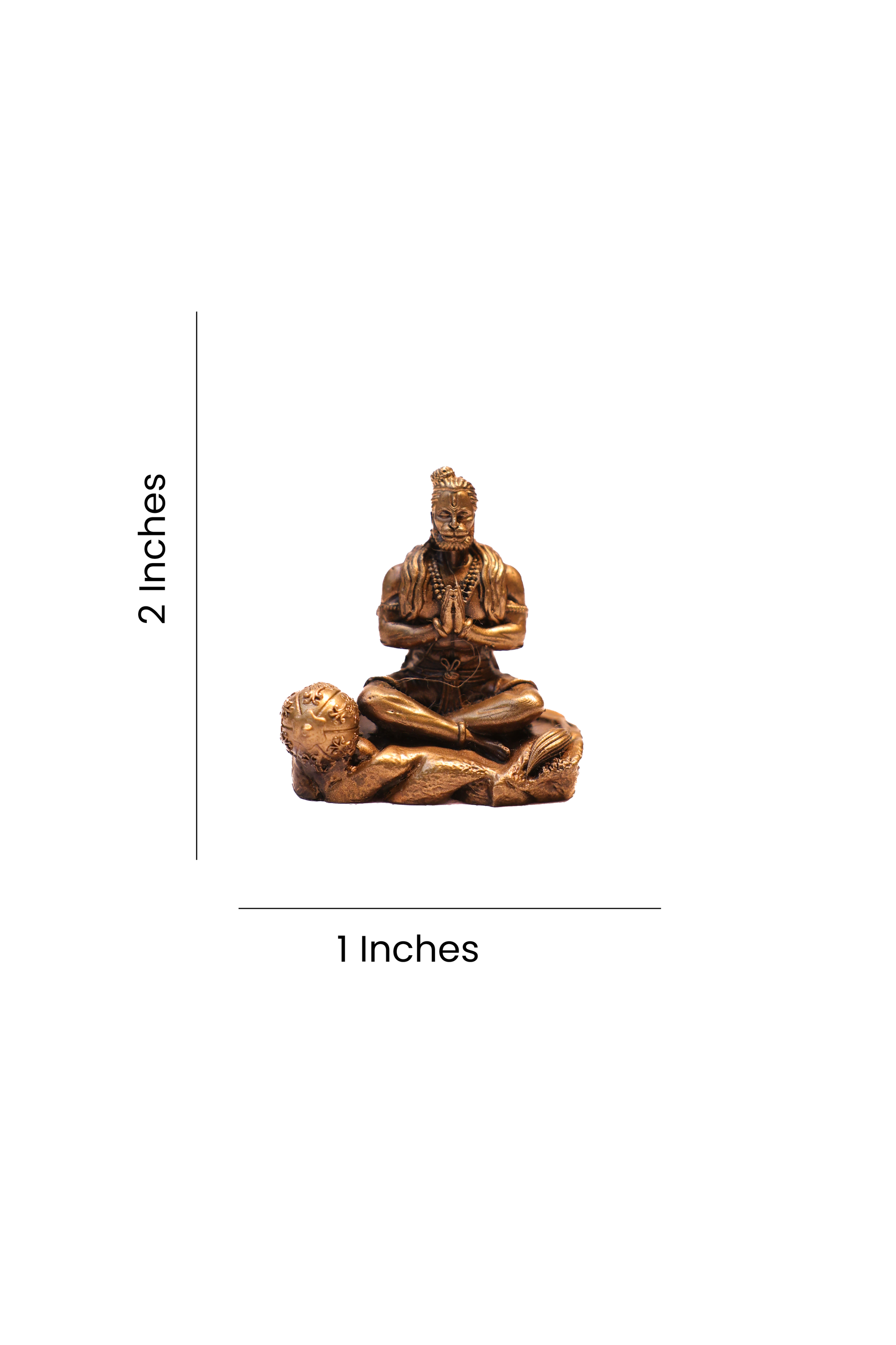 A compact statue of Lord Anjaneya in a meditative posture, symbolizing courage, unwavering devotion, and spiritual protection. The fine details highlight his serene face, mace, and traditional attire.