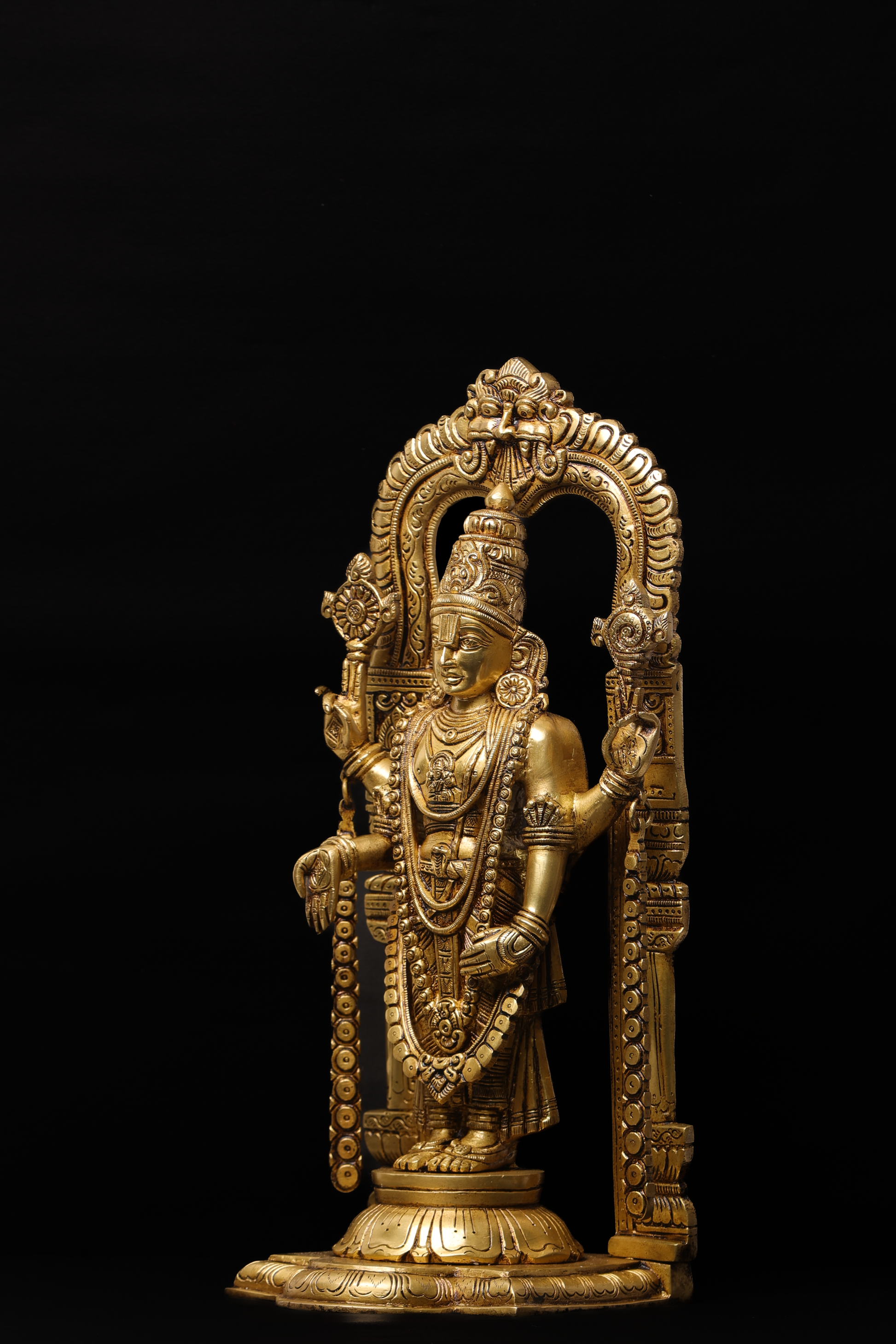 A magnificent representation of Lord Venkateswara (Balaji) standing under an intricately designed arch, symbolizing prosperity, protection, and spiritual strength. The fine detailing reflects divine grace and adds a sacred aura to any space.