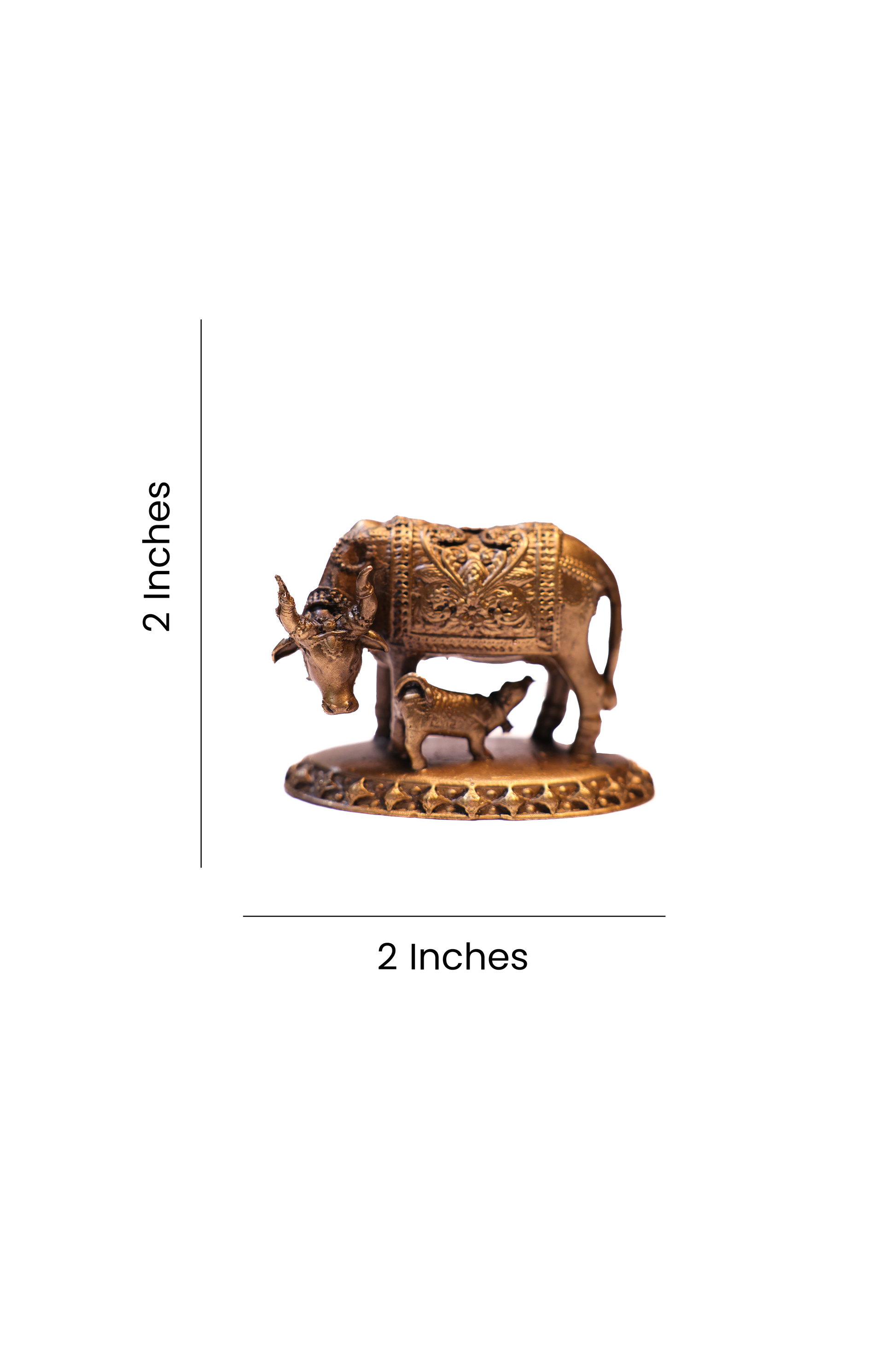 Invoke Auspiciousness and Nurture with the 2″ Panchaloha Cow & Calf Statue