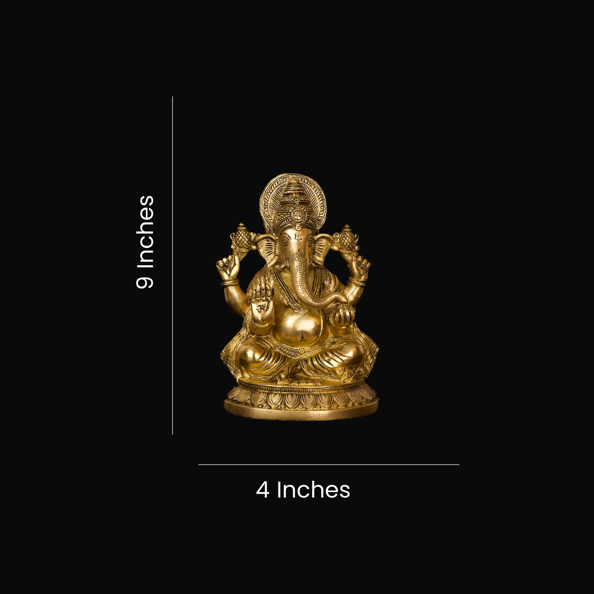 1 × 9″ GANESHA Brass Idol, carefully packed for safety and ready for altar, décor, or gifting