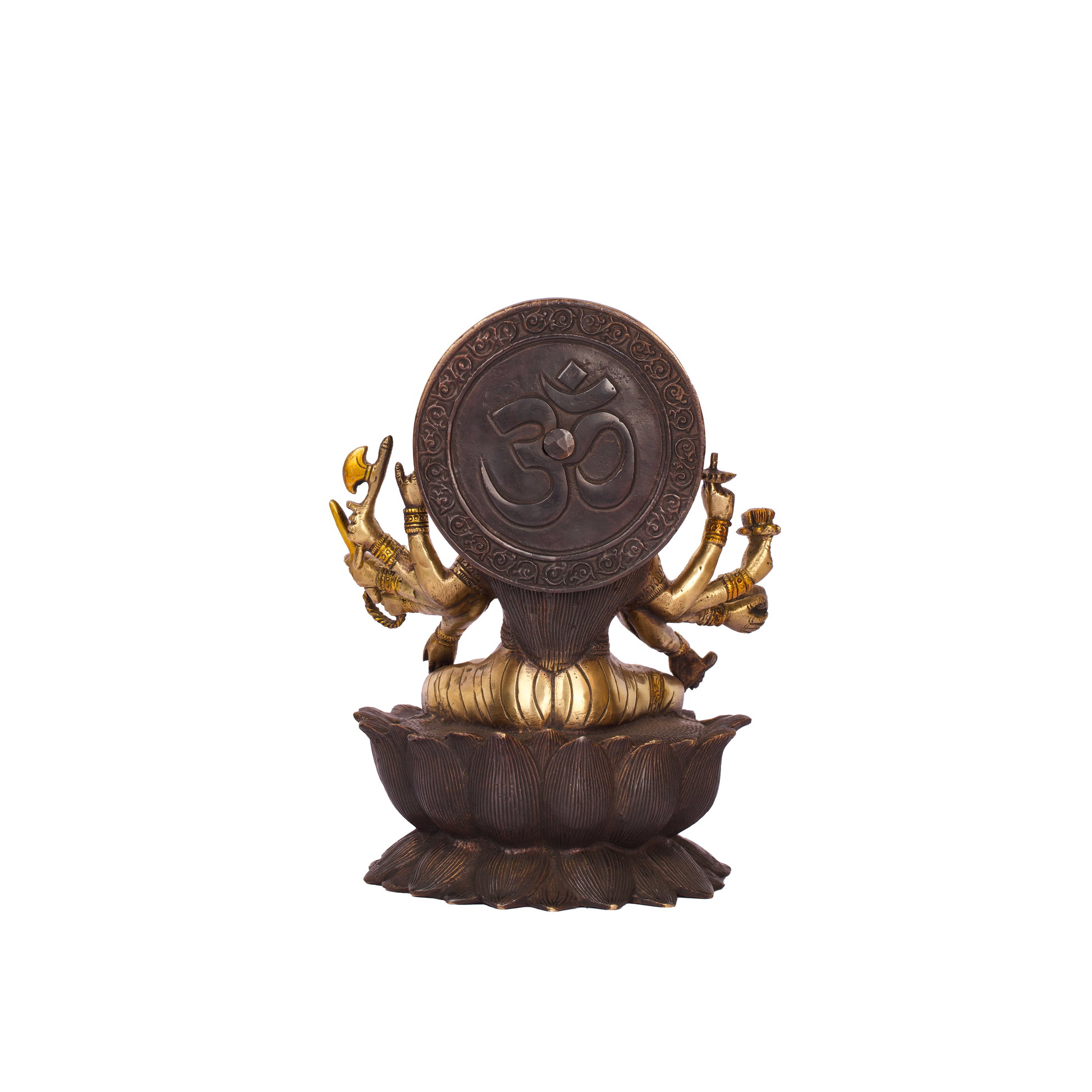 Dual-tone antique gold and bronze finish that enhances the intricate features, capturing the radiance of Goddess Gayatri seated gracefully on a lotus pedestal.