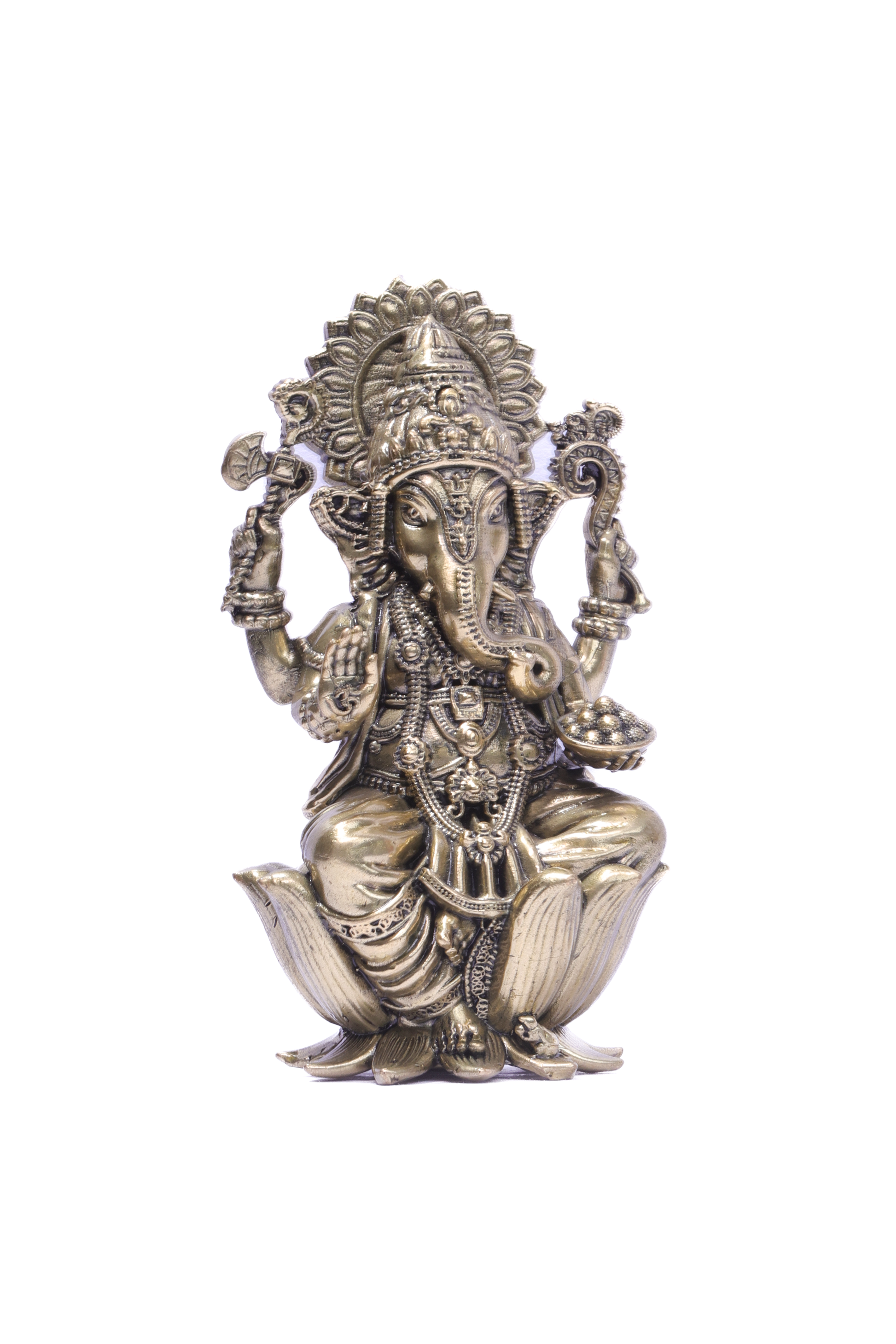 Invite auspicious beginnings, purity, and prosperity with this beautifully handcrafted Brass Lotus Ganesh Idol from Poduvals.
