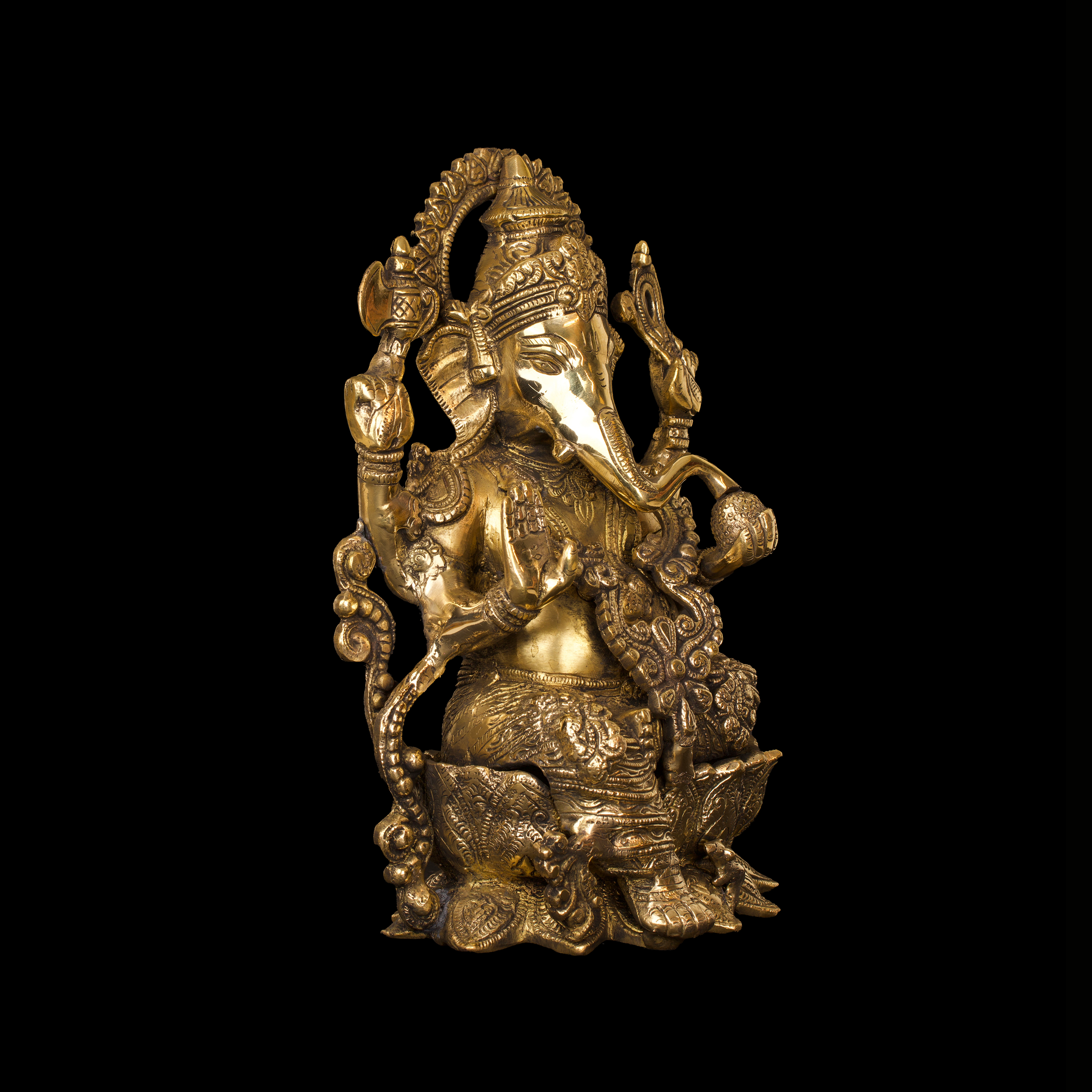 One 12-inch Lotus Ganesha Brass Idol, carefully packed for safe handling and ready for worship or display.