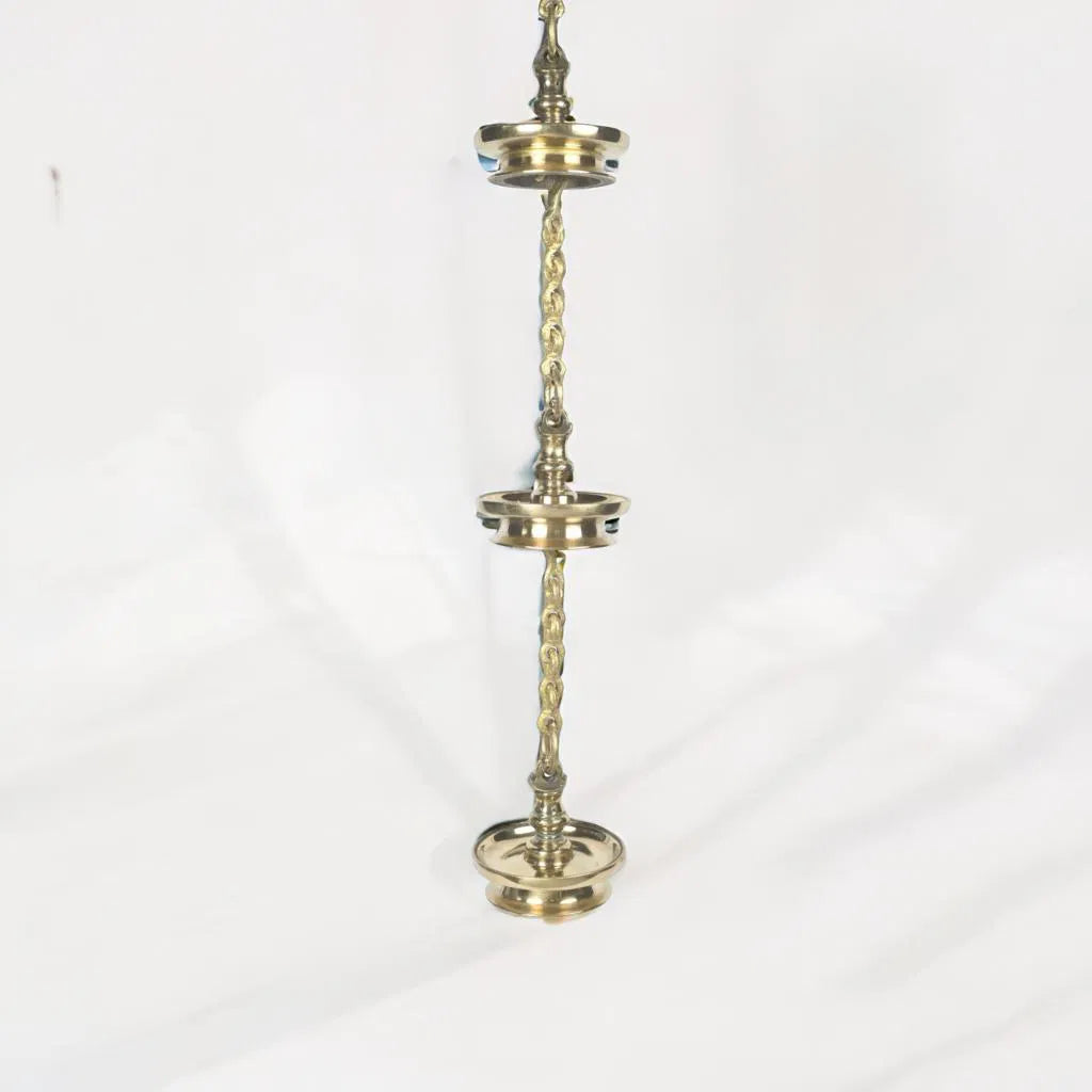 Weighing 4 kg, the Maala Vilakk boasts intricate detailing and a polished finish, showcasing the exceptional craftsmanship that defines each piece. Its robust design makes it an impressive centerpiece for your altar, perfect for celebrating festivals, rituals, or simply adding a touch of reverence to your daily worship.