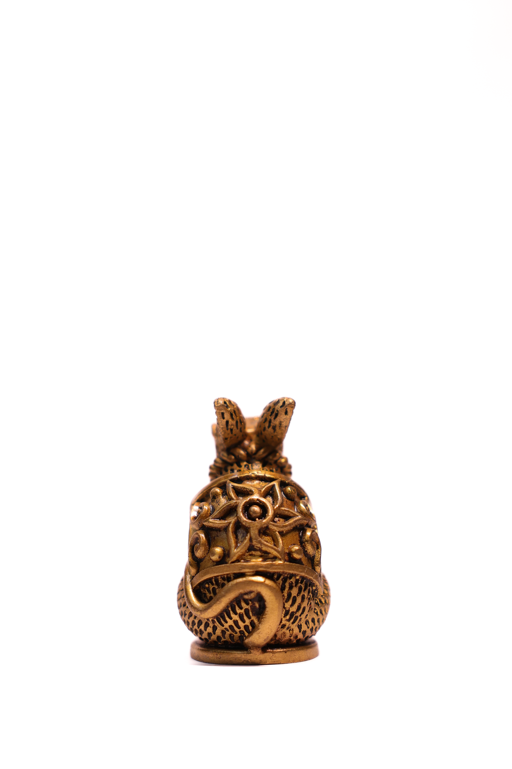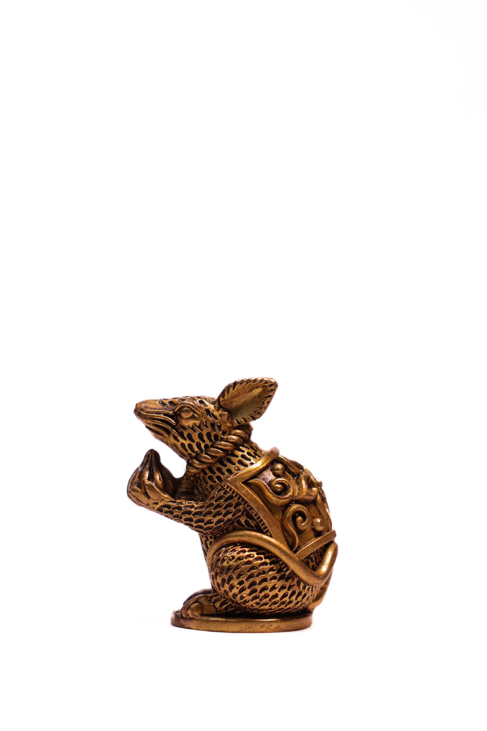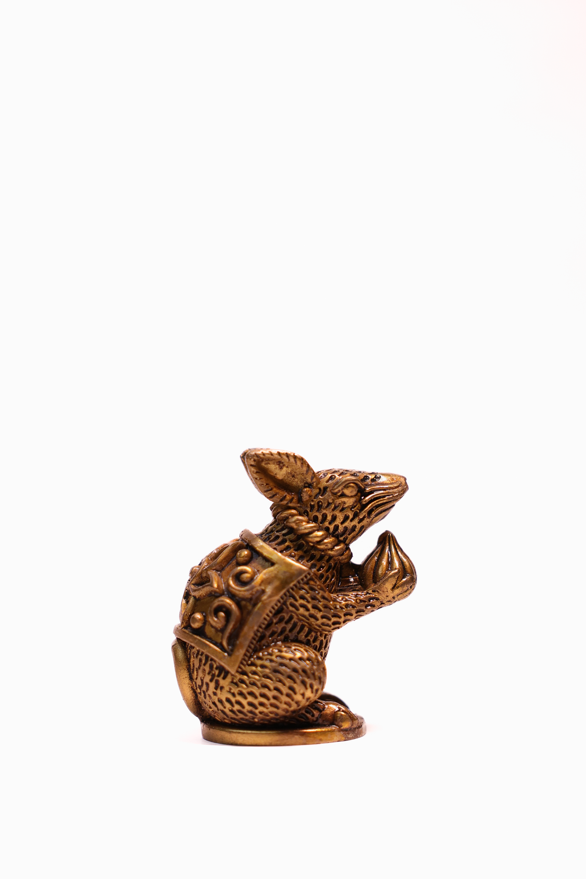 Design: The sacred Mooshika (mouse), vahana of Lord Ganesha, sculpted in a poised, reverential stance with ornamental textures