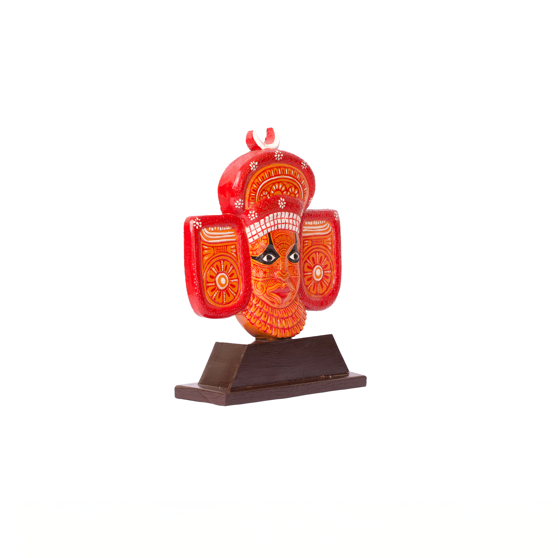 Expertly handcrafted from premium-quality seasoned wood by traditional artisans of Kerala, this piece captures the sacred grandeur and vivid expressions of Theyyam, the ancient ritual art form symbolizing divine power and protection.